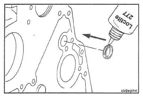 Apply a bead of Loctite 277 around the outside diameter of the lubricating oil passage expansion plugs.