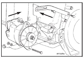 Install the alternator, capscrew, washer, and nut to the alternator mounting bracket.