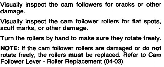 Clean the cam follower shafts with solvent. Dry with com pressed air.
