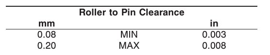 NOTE: If the roller to pin clearance is not within these specifications, the roller and the pin must be replaced. Refer to