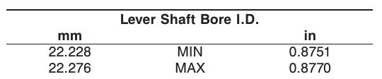 NOTE: Valve and injector levers without bushings were introduced on January 1, 1987. If the shaft bore is worn beyond the maximum specification, the lever must be replaced.