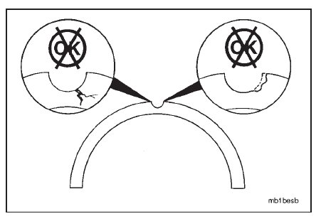 Visually inspect the thrust bearings for cracks or damage at the locating notch.