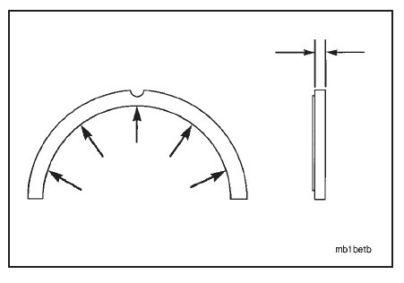 Measure the thrust bearing thickness. Measure the bearings in areas that show visible wear.