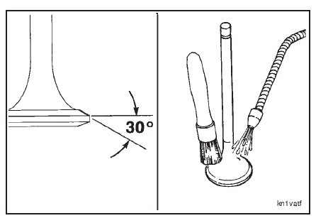 Grind the intake and the exhaust valves to the angle shown.