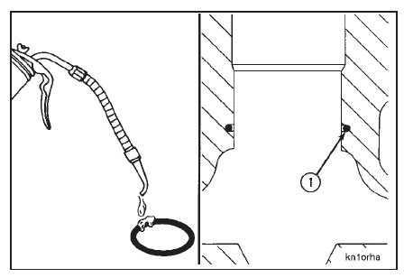 Install the o-ring (1) into the groove of the injector sleeve bore.