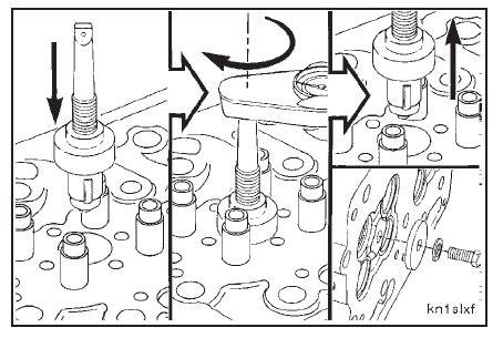 Caution: Support the cylinder head to prevent damage to the injector tip that protrudes from the combustion