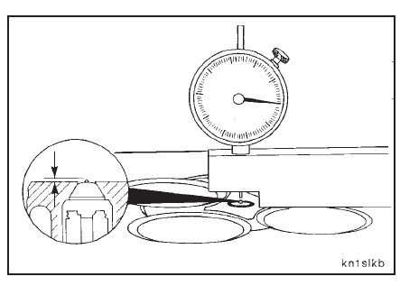 Turn the cylinder head over and use a depth gauge, Part No. 3823495, to measure the injector tip protrusion.