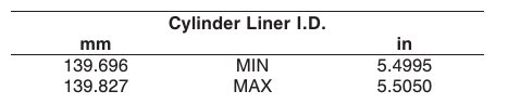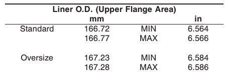 Replace the liner if measured dimensions exceed limits given above in the table.