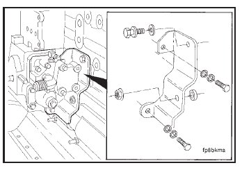 Install the bracket and tighten the capscrews alternately and evenly to both the fuel pump and engine block.