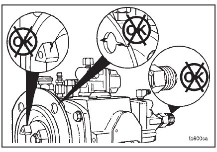 Visually inspect the fuel pump body and front cover for cracks or other damage.