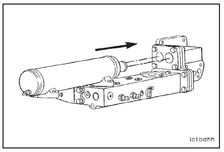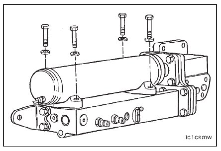 Install the oil cooler filter head, gasket, washers, and filter head 12 point capscrews.