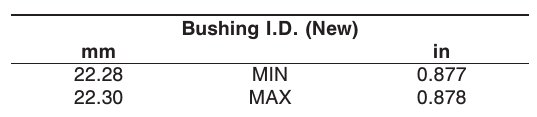 NOTE: Bushings that do not meet the specifications given must be replaced.