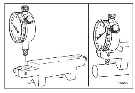 NOTE: Hold the setting block and the indicator against the boring bar so the indicator tip will be over the tool kit.