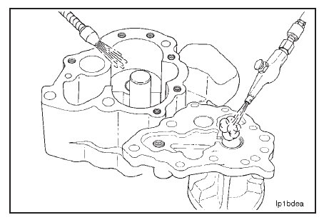 Use solvent to clean the oil pump body and the cover. Dry with compressed air.