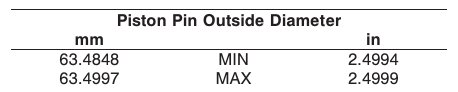 those in the table, do not reuse. If the piston pin is unacceptable for reuse, do not use the matching piston. Cummins recommends replacing pistons and pins in sets.
