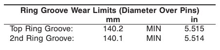 Use piston ring groove wear gauges, Part No. 3823870, 3823869, and a 5-6 inch micrometer, to inspect the top