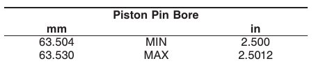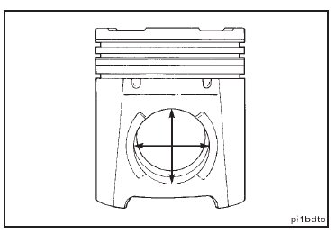 Measure the piston pin bore when the piston temperature is at 21°C [70°F] in two places 90 degrees apart.