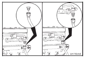 Caution: Hold the oil manifold fitting hex with a backup wrench while installing the supply line to avoid damaging
