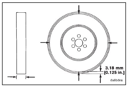 Measure the thickness in four places 90 degrees apart approximately 3.18 mm [0.125-inch] from the outside di-