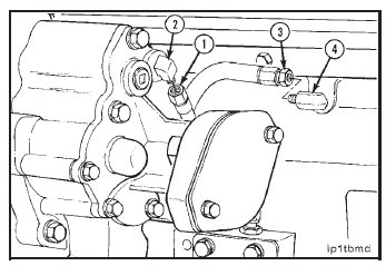 Connect the sensor drain line (1) to the tee fitting on the cylinder block.
