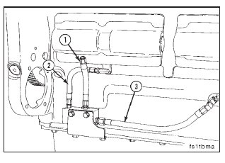Remove the pressure signal line (1), the oil supply line (2), and drain line (3) from the viscosity sensor.