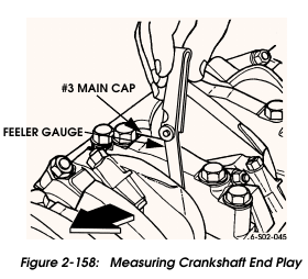 NOTE: If crankshaft does not rotate freely or binds in spots, problem may be: misaligned main caps, bearing incorrectly installed, foreign material on bearing or journal, wrong bearing size.
