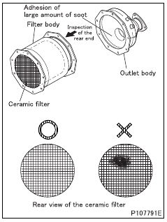 • Disassemble the diesel particulate filter and check for the following items.