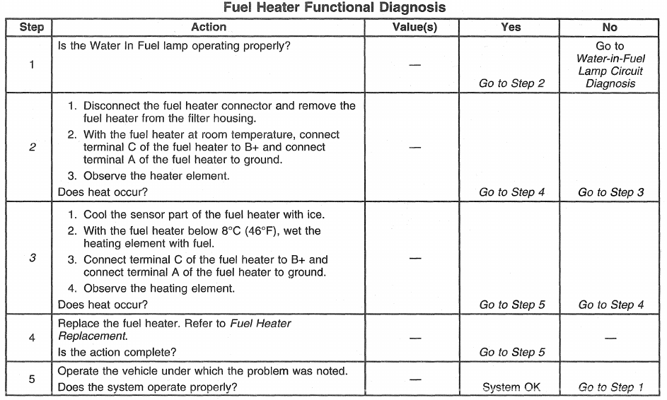 2. This step checks for a fuel heater that is check ON.