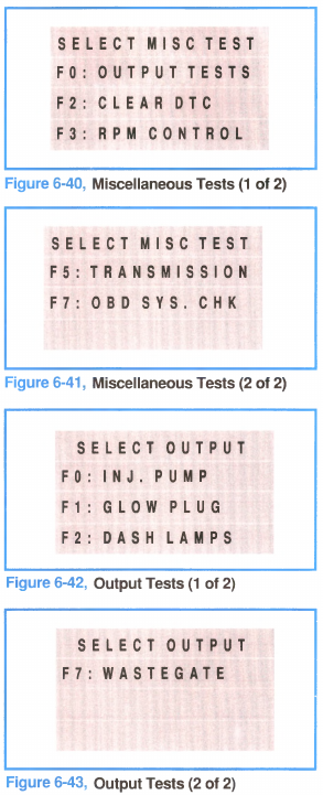 After entering the Miscellaneous Tests mode, the following tests are available for the 6.5L EFI engine (figures 6-40 and 6-41)