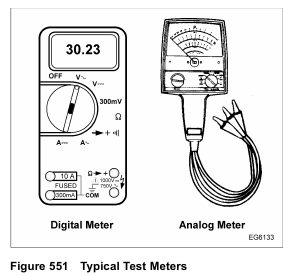 current. Therefore, test equipment must be designed to not damage any part the electronic control system. Do not use analog meters unless specified. Analog meters use too much current to test an electronic control system.