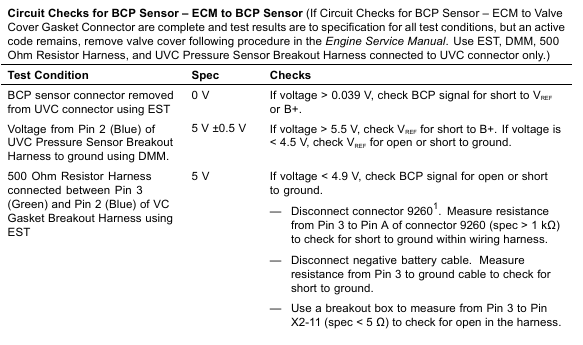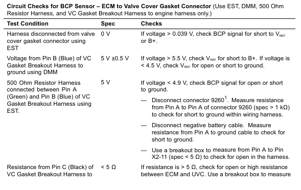 • Circuit Checks for BCP Sensor – ECM to Valve Cover Gasket Connector