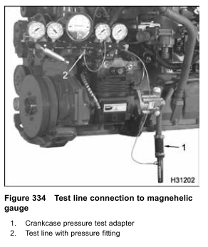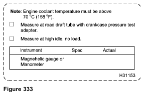 8. Run engine to reach normal engine operating 70 °C (158 °F) or higher, before measuring crankcase pressure.