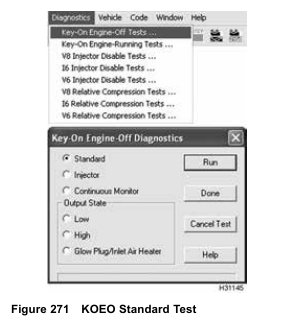 NOTE: When using the EST to do KOEO or KOER diagnostic tests, Standard Test is always selected and run first. If the ignition switch is not cycled, the Standard Test does not have to be run again.
