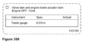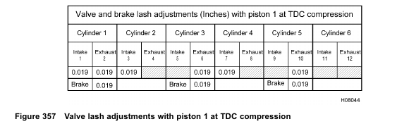 If engine is equipped with the Diamond Logic® engine brake, corresponding brake actuator lash can be adjusted        before rotating the crankshaft. See “Brake Actuator Lash” in this section.