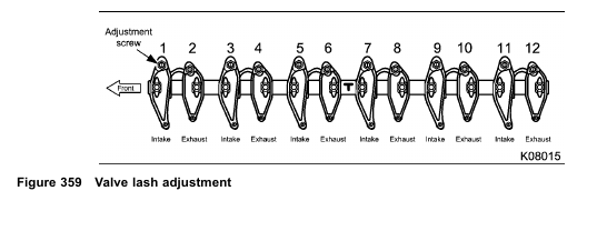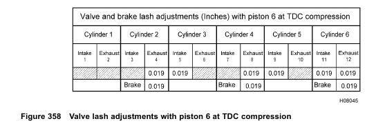 • Six valve adjustments are made when piston 6 is at Top Dead Center (TDC) compression.