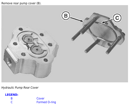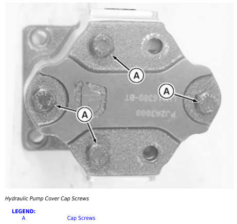 [3] – Remove four remaining cap screws (A) securing pump cover to pump body.