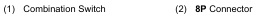 1. Remove the steering wheel and rear bonnet and disconnect 8P connector (2) after turning the main switch OFF position.