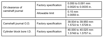3. If the oil clearance exceeds the allowable limit, replace the camshaft.