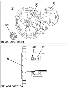 • Assemble the oil seal (2) with correct direction. (See figure on the left.)