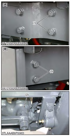 Posted on December 14, 2021 Home » KUBOTA » L2501 » KUBOTA – L2501 – STEERING – DISASSEMBLING AND ASSEMBLING – Steering Gear Box Assembly KUBOTA – L2501 – STEERING – DISASSEMBLING AND ASSEMBLING – Steering Gear Box Assembly 1. Remove the screws (1). 2. Remove the steering gear box (2). (When reassembling) Related Posts KUBOTA - L2501 - STEERING - STEERING GEAR BOX - STRUCTUREThis integral power steering mechanism consists of the following two major components as shown above:… KUBOTA - L2501 - STEERING - STRUCTUREThe integral type power steering is used on this tractor. This steering system is composed… KUBOTA - L2501 - STEERING - STEERING GEAR BOX - OPERATION - Neutral PositionWhile the steering wheel is not moved, the torsion bar (2) is not twisted. There… KUBOTA - L2501 - STEERING - STEERING GEAR BOX - OPERATION - Right TurnThe operating principle is the same as with the left turn. For the right turn,… KUBOTA - L2501 - STEERING - TROUBLESHOOTING