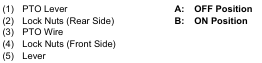 2. Set the PTO lever (1) at the “OFF” position “A”.