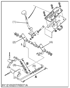 backward of the arm H (2) and arm (L – R) (4) in the neutral position has become too large. So make adjustment to the turnbuckle (L – R) (5) to correct the drift.